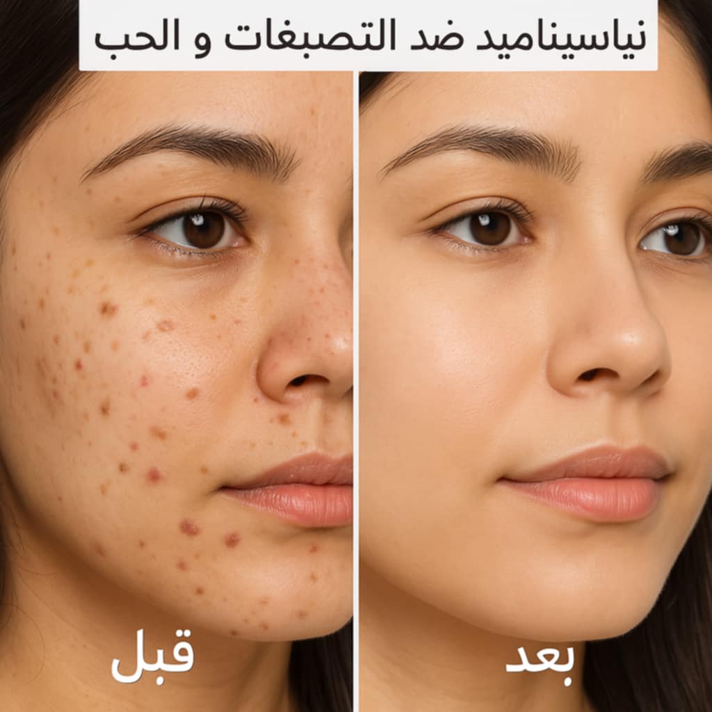 الحمد لله جربت نياسيناميد وكانت عندو فعالية وبانت النتيجة تاعو بشهر وجهي رجع صافيي وهذا لي خلاني نزيد ندي من المنتجات الاخرى